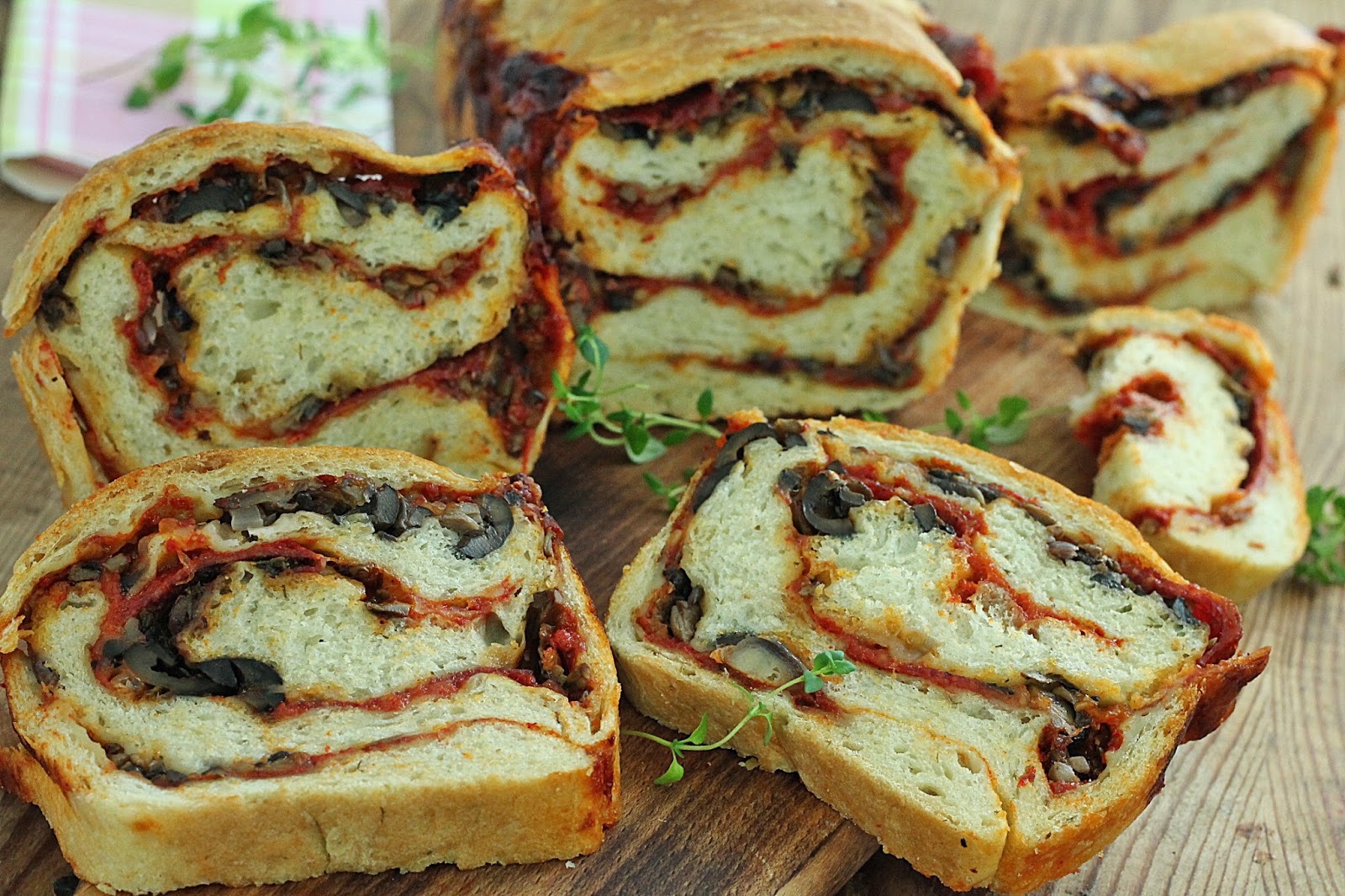 Moim nowym odkryciem jest pizza chlebek która idealnie nadaje się na piknik. Pieczmy go w domu pakujemy w papier, i na miejscu kroimy. Jest bardzo dobry i na ciepło i na zimno.