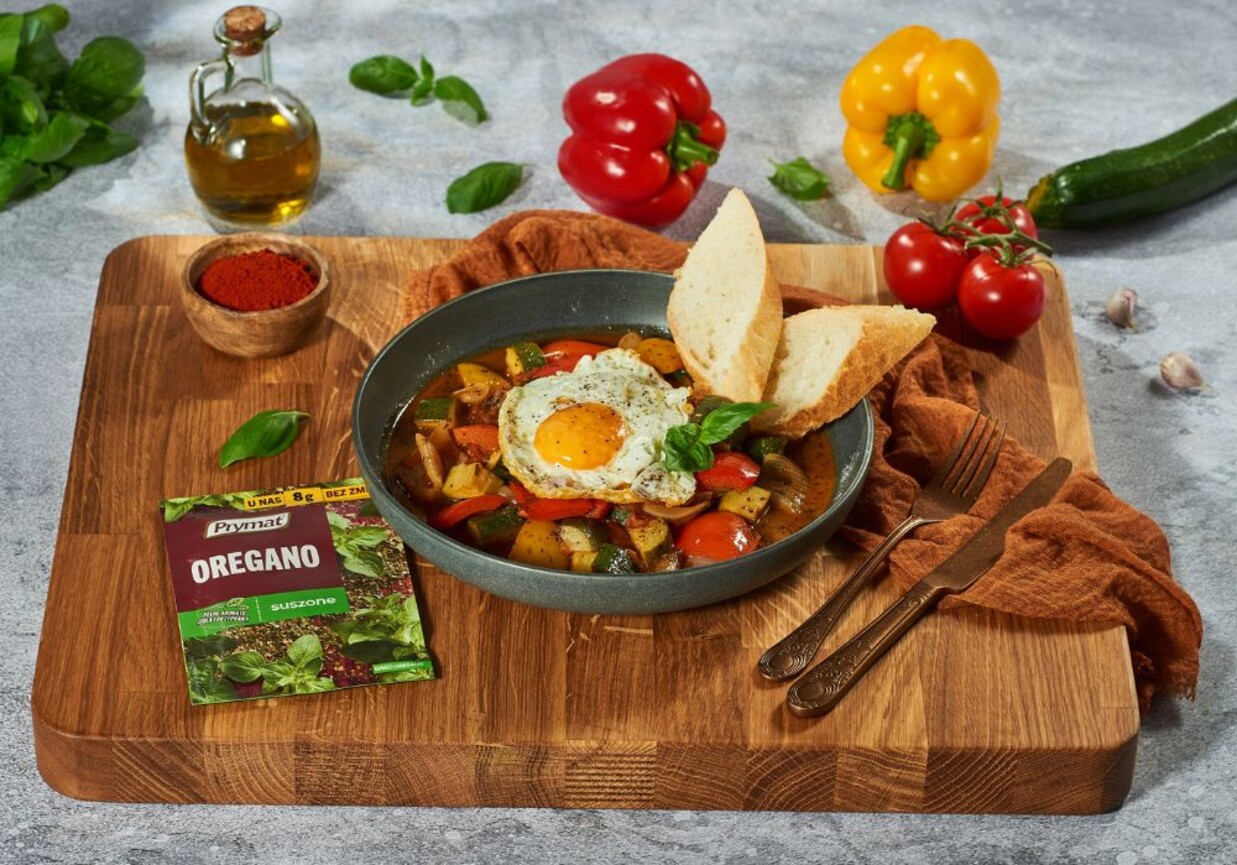 W garnku rozgrzewamy oliwę i smażymy wszystkie warzywa. Całość doprawiamy oregano suszonym oraz papryką wędzoną słodką.
